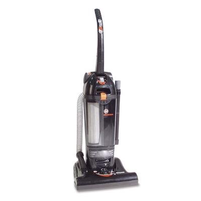 The Hoover C1660-900 Hush commercial bagless upright vacuum has a 12-amp motor, a twin-chamber bagless system with a HEPA (high-efficiency particulate air) filter, a power surge switch, a "hush" mode, and various cleaning accessories. The vacuum has a 12-amp motor that picks up dirt and dry debris, as well as small objects such as staples and paperclips. The twin-chamber bagless system with HEPA filter traps dirt and does not require buying or changing vacuum bags. The HEPA air filter removes at least 99.97% of all particles greater than 0.3 micrometers. The power-surge switch gives extra power when vacuuming heavily soiled areas. The "hush" mode allows quiet operation. Cleaning accessories come attached to the vacuum, including a stretch hose, an extension wand, an upholstery nozzle, a dusting brush, and a crevice tool for cleaning surfaces and hard-to-reach areas. The vacuum also includes a headlight, a dual-brush agitator with a 15" cleaning path, and a furniture guard that doesn’t leave marks when it bumps up against furniture or walls.